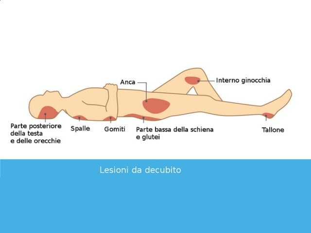 Ciò è ancor più vero se il soggetto affetto da piaghe da decubito è vittima di patologie quali: parkinson in fase avanzata, SLA, lesioni del midollo con paraplegia o tetraplegia, fratture degli arti inferiori o fratture del bacino con immobilità prolungata, decorsi postoperatori con degenza prolungata e allettamento, stato di coma. Anche altri fattori e condizioni possono dar luogo a lesioni da pressione o favorirne la comparsa: eccessiva magrezza, carenze nutrizionali o obesità, incontinenza e conseguenze contatto prolungato di feci e/o urine con la cute, supporti (come materasso o sedia a rotelle) troppo rigidi.